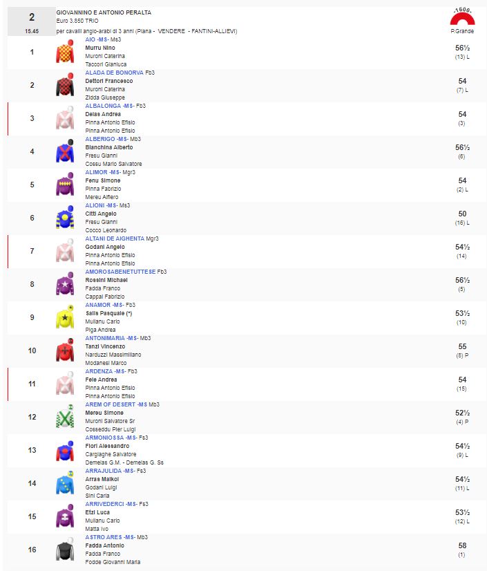 2^ Corsa Premio Giovannino e Antonio Peralta