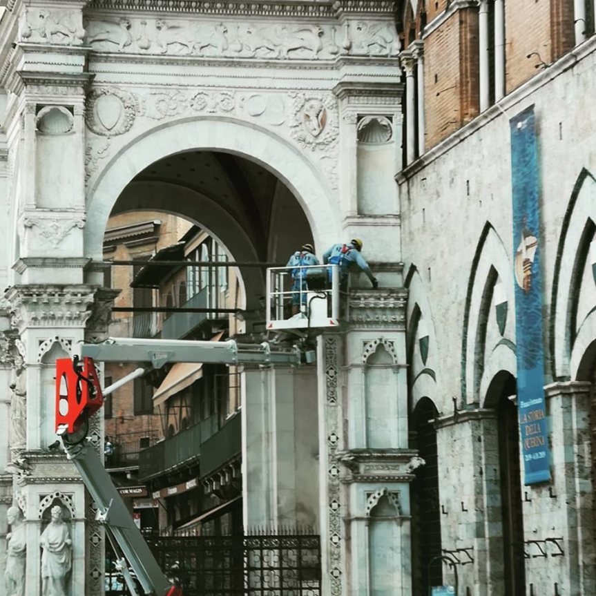 Oggi 23/09 chi è passato da piazza del Campo ha potuto vedere una camion con gru e cestello posizionato di fronte a palazzo Pubblico. Infatti sono in corso operazioni di manuitenzione e pulizia della Cappella di palazzo Pubblico, segno che l’Amministrazione Comunale cè e effettua gli interventi volti a preservare le nostre bellezze.