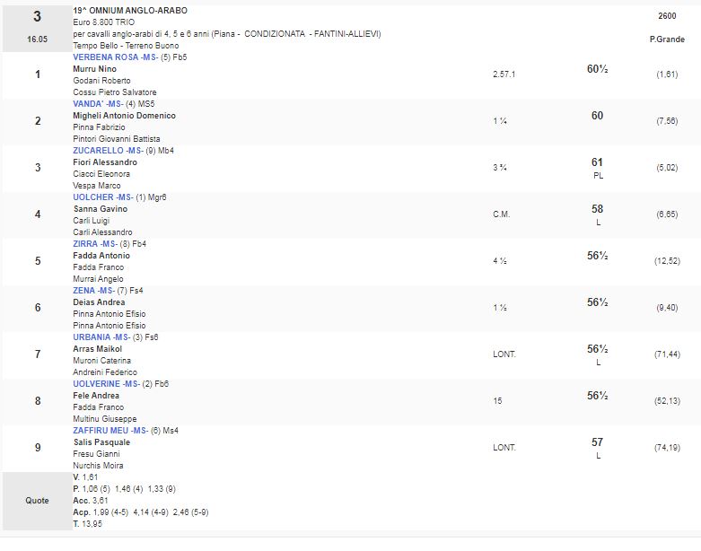 Ippica, Chilivani: Oggi 29/09 Risultati 3^ Corsa Vince Verbena Rosa 3^ Corsa 19^ Omnium Anglo-Arabo vince Verbena Rosa da Fisich e Pintadera Bella di proprietà di Cossu Pietro Salvatore e allenato da Godani Roberto Condividi sul web: Fai clic per condividere su Facebook (Si apre in una nuova finestra) Facebook Fai clic per condividere su WhatsApp (Si apre in una nuova finestra) WhatsApp Fai clic per condividere su Telegram (Si apre in una nuova finestra) Telegram Fai clic per condividere su X (Si apre in una nuova finestra) X Fai clic qui per stampare (Si apre in una nuova finestra) Stampa Fai clic per inviare un link a un amico via e-mail (Si apre in una nuova finestra) E-mail Mi piace Caricamento... Correlati