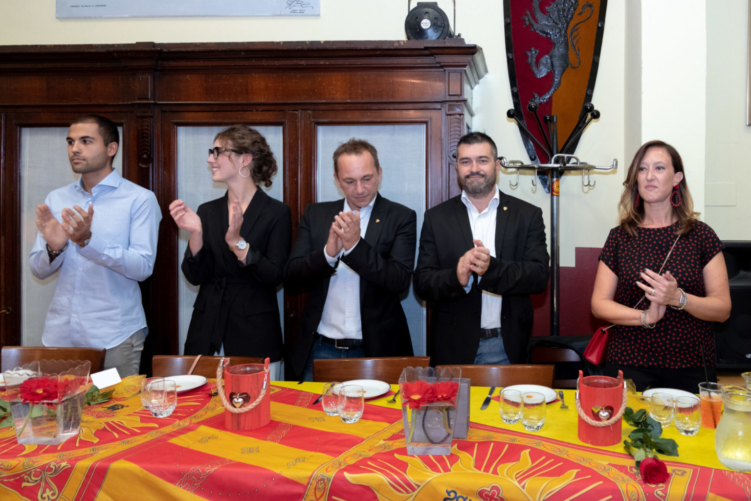 Durante la cena, preparate e servita impeccabilmente dai ragazzi di Contrada, è stato rivolto anche un particolare ringraziamento a Franco Ciocia, che dopo 10 anni di servizio ha concluso la sua esperienza di barista di Contrada.”