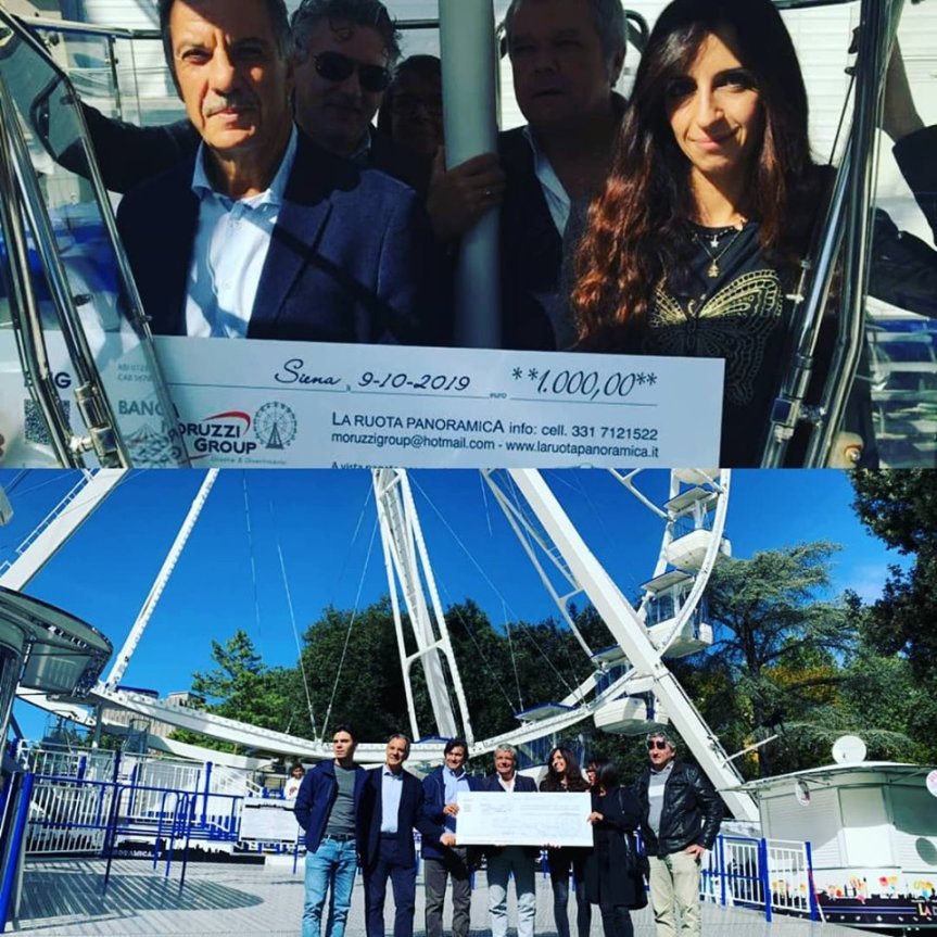 Consegnato un assegno alla #FondazioneNanniniOnlus grazie alla generosità dei gestori della ruota panoramica alla Lizza.