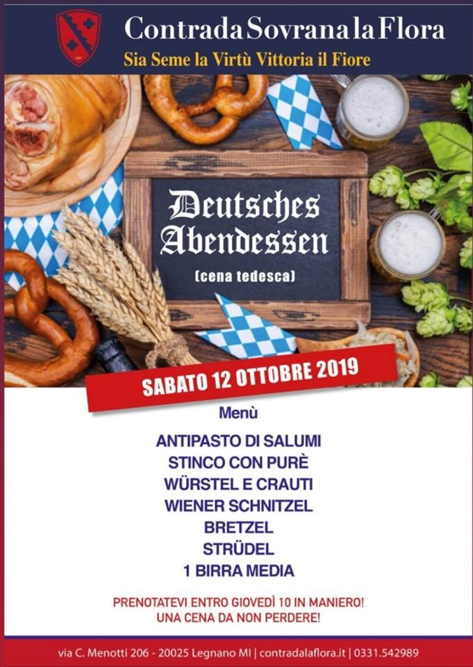 Sabato 12 ottobre presso la Contrada La Flora si svolgerà la Cena Tedesca.