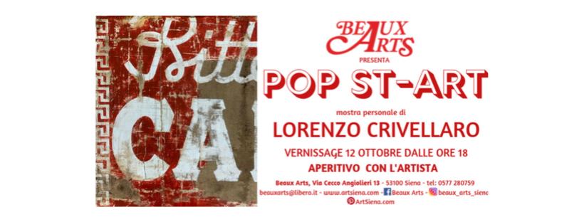 Siena: 12/10 Pop ST-ART presso Beaux Arts Mostra personale del Maestro Lorenzo Crivellaro dal 12 ottobre al 9 novembre. Vernissage 12 Ottobre dalle ore 18. Aperitivo con l’Artista. Vi aspettiamo numerosi in via Cecco Angiolieri 13, Siena Condividi sul web: Fai clic per condividere su Facebook (Si apre in una nuova finestra) Facebook Fai clic per condividere su WhatsApp (Si apre in una nuova finestra) WhatsApp Fai clic per condividere su Telegram (Si apre in una nuova finestra) Telegram Fai clic per condividere su X (Si apre in una nuova finestra) X Fai clic qui per stampare (Si apre in una nuova finestra) Stampa Fai clic per inviare un link a un amico via e-mail (Si apre in una nuova finestra) E-mail Mi piace Caricamento... Correlati