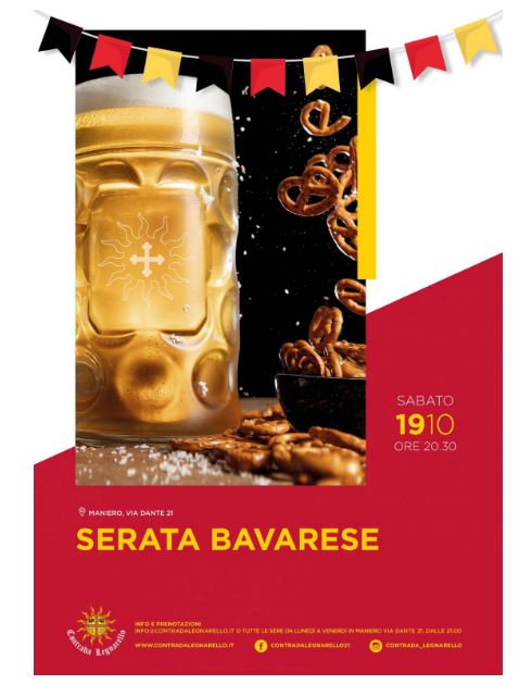 E allora ecco la SERATA BAVARESE che si svolgerà Sabato 19 Ottobre 2019 in Maniero.