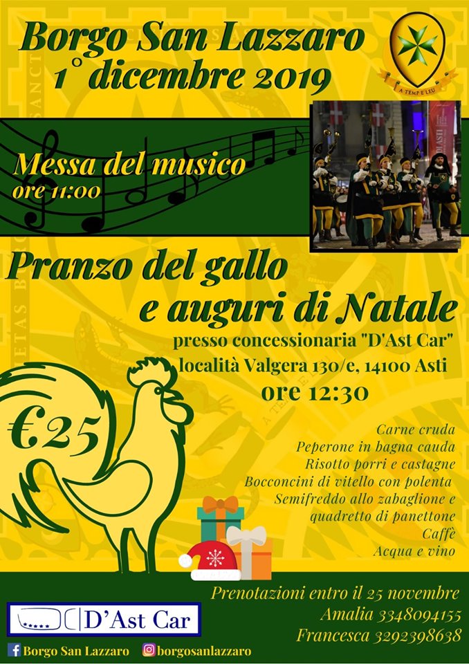 - ore 12.30 “Pranzo del Gallo e Aguri di Natale”