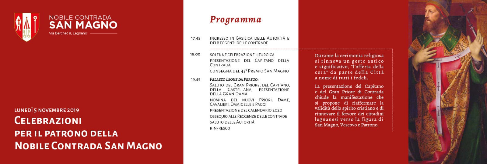La Contrada San Magno apre le celebrazioni dedicate al Santo Patrono.