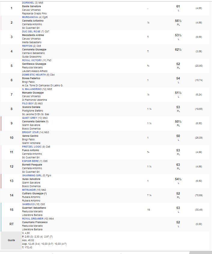Ippica, Siracusa: Oggi 01/11 Risultati 5^ Corsa Vince Dorkhel 5^ Corsa Premio Mediterraneo vinta da Dorkhel da Kheleyf e Doric Lady di proprietà di Rapisarda Orazio Pino e allenato da Caruso Vincenzo Condividi sul web: Fai clic per condividere su Facebook (Si apre in una nuova finestra) Facebook Fai clic per condividere su WhatsApp (Si apre in una nuova finestra) WhatsApp Fai clic per condividere su Telegram (Si apre in una nuova finestra) Telegram Fai clic per condividere su X (Si apre in una nuova finestra) X Fai clic qui per stampare (Si apre in una nuova finestra) Stampa Fai clic per inviare un link a un amico via e-mail (Si apre in una nuova finestra) E-mail Mi piace Caricamento... Correlati