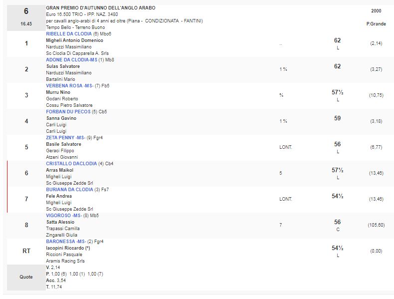 6^ Corsa Gran Premio d’italia dell’Anglo-Arabo vinta da Ribelle da Clodia da Bombolino e Smollet di proprietà di Sc Clodia di Capparella A Srls e allenato da Narduzzi Massimiliano