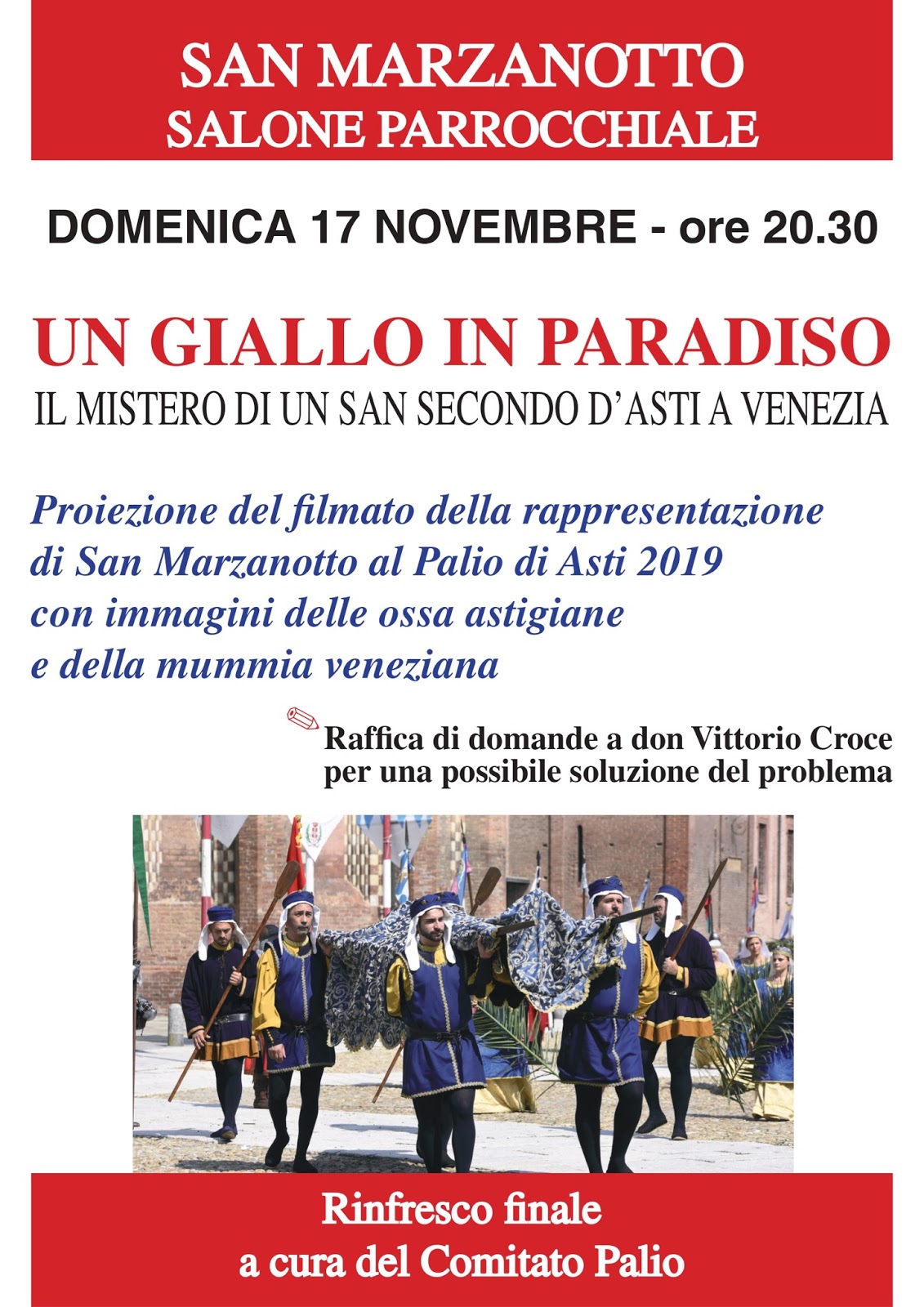 “A distanza di oltre 2 mesi dal Palio 2019, continua a fare discutere il tema presentato da Borgo San Marzanotto al Corteo Storico, ovvero: San Secondo a Venezia!