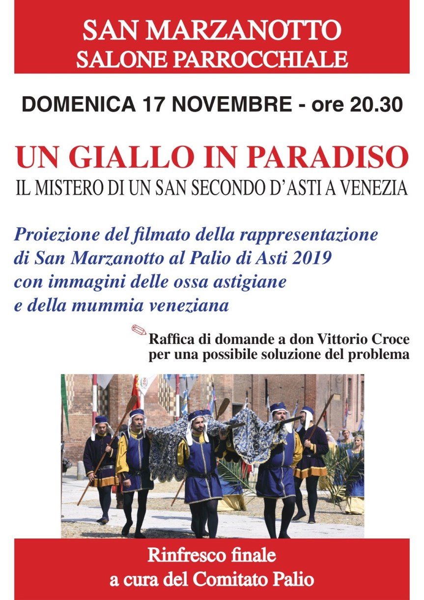 Non si placano le voci che vedono il nostro Santo Patrono “espugnato” da Asti e portato sull’isola di San Secondo a Venezia.