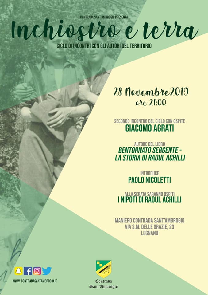 Ecco il secondo appuntamento della serie “Inchiostro e Terra” di cui sarà protagonista Giacomo Agrati con il libro “Bentornato Sergente – La storia di Raoul Achilli”