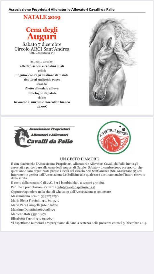 Palii, Associazione Cavalli Palio: 07/12 Cena degli Auguri