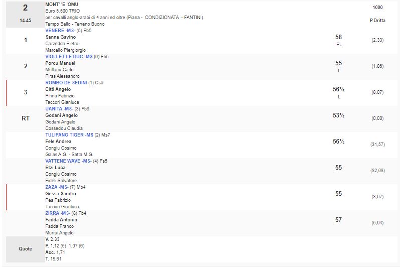 2^ Corsa Premio Mont’ ‘e ‘Omu vinta da Venere da Ispanico Sauro e Miryam di proprietà di Marcello Piergiorgio e allenato da Carzedda Pietro