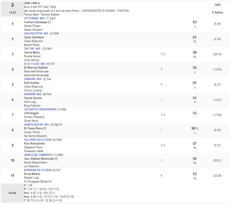 Vittorino da Colossus e Murra di Gallura di proprietà di Atzeni Giovanni e allenato da Geraci Filippo