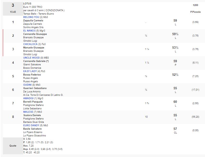 3^ Corsa Premio Lotus vinta da Belong You da Swiss Spirit e Flighty Clarets di proprietà di Sortino Angelo Srls e allenato da Zappulla Carmelo