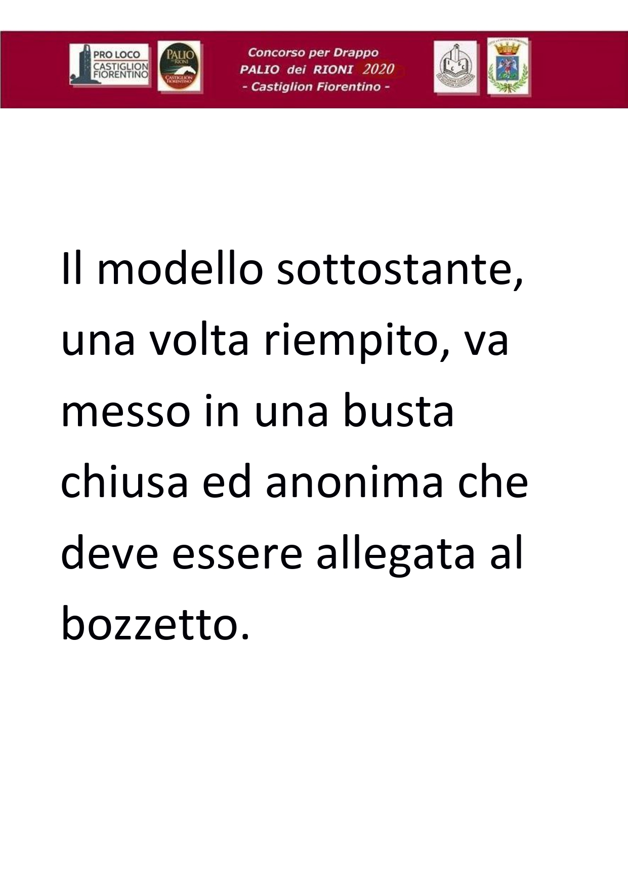 Il modello sottostante una volta riempito va messo in una busta chiusa ed anonima che va allegata al bozzetto.