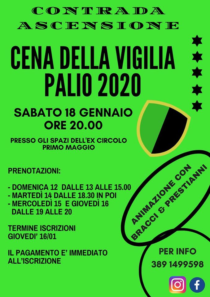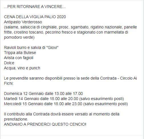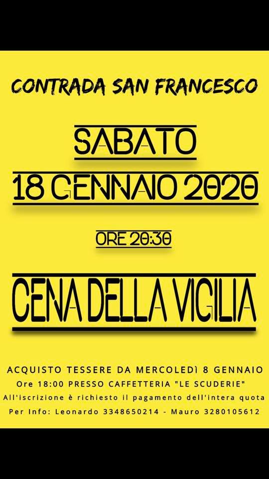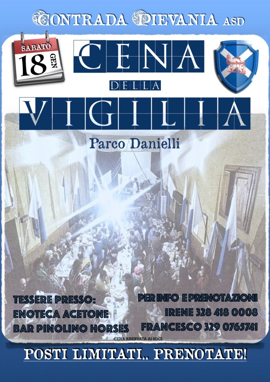 Qua sotto troverete le locandine della Cena della Vigilia di domani 18/01 Contrada per Contrada
