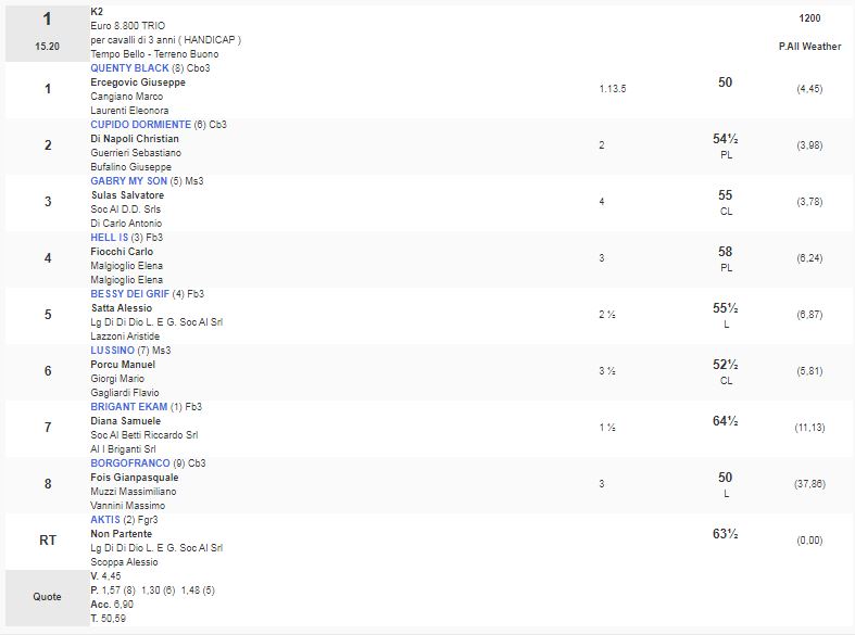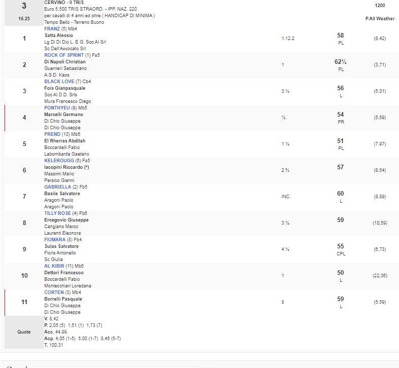 3^ Corsa Premio Cervino – II Tris vinta da Franz