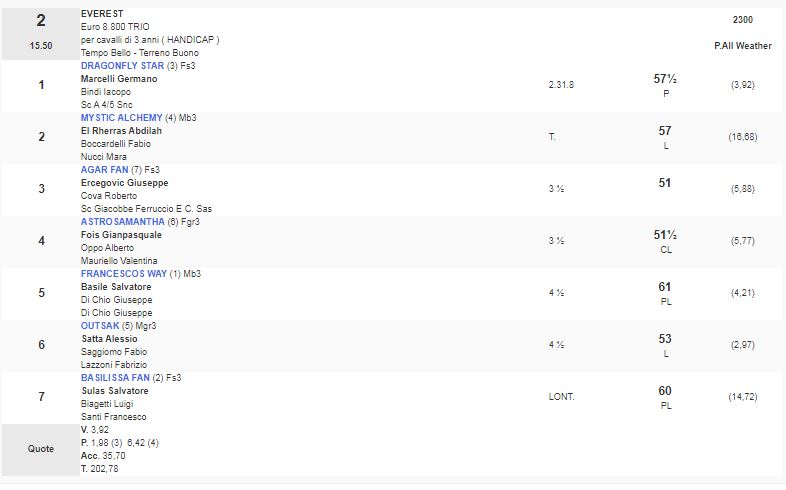 2^ Corsa Premio Everest vinta da Dragonfly Star