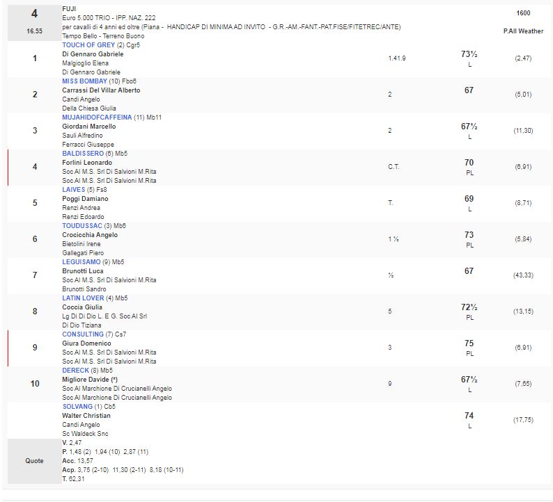 4^ Corsa Premio Fuji vinta da Touch of Grey