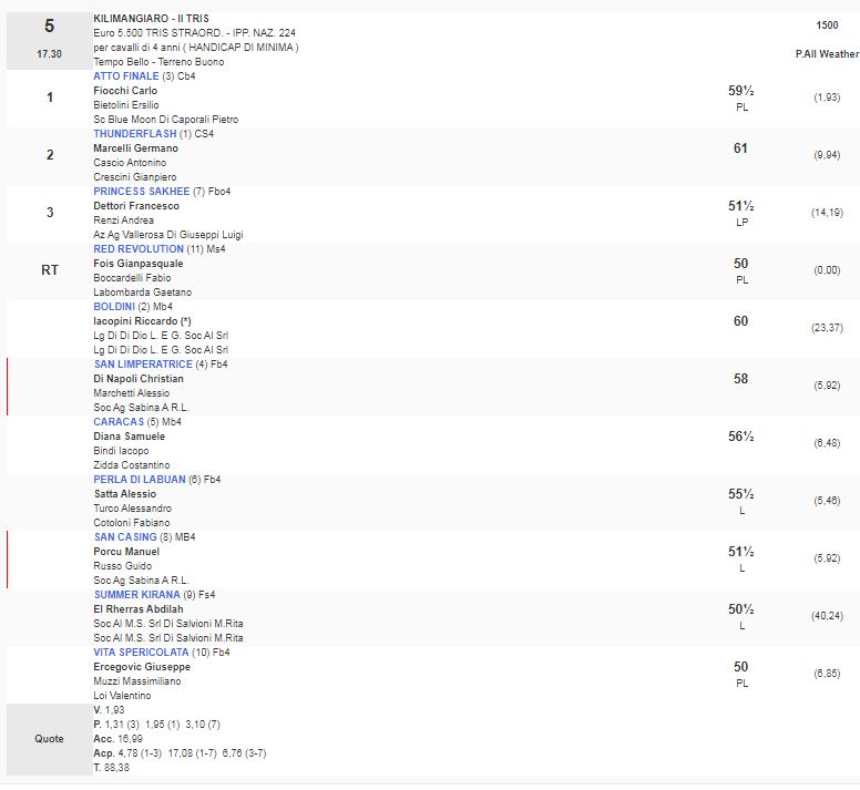 5^ Corsa Premio Kilimangiaro – II Tris vinta da Atto Finale