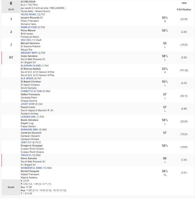 6^ Corsa Premio Aconcagua vinta da Veuve Noire