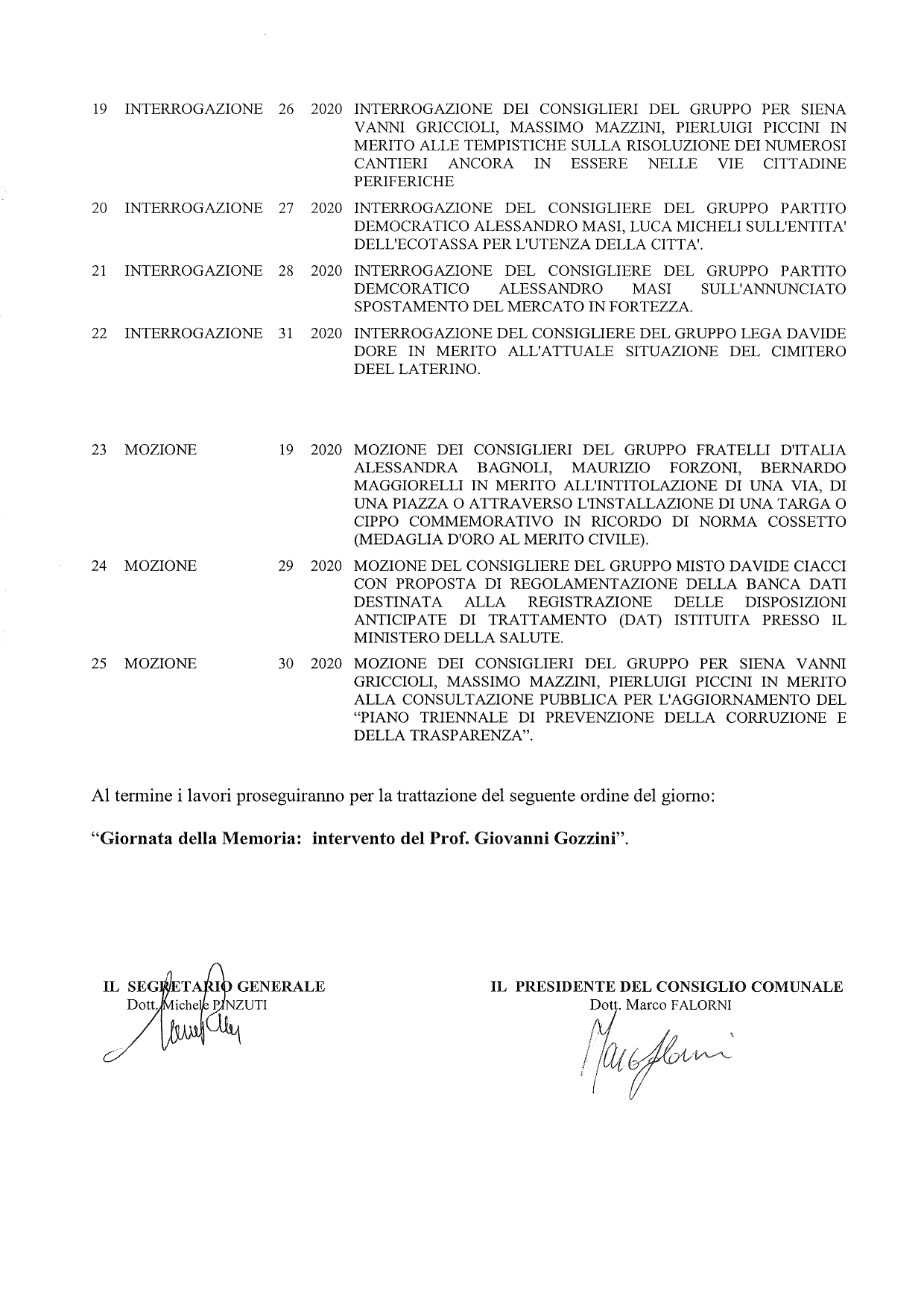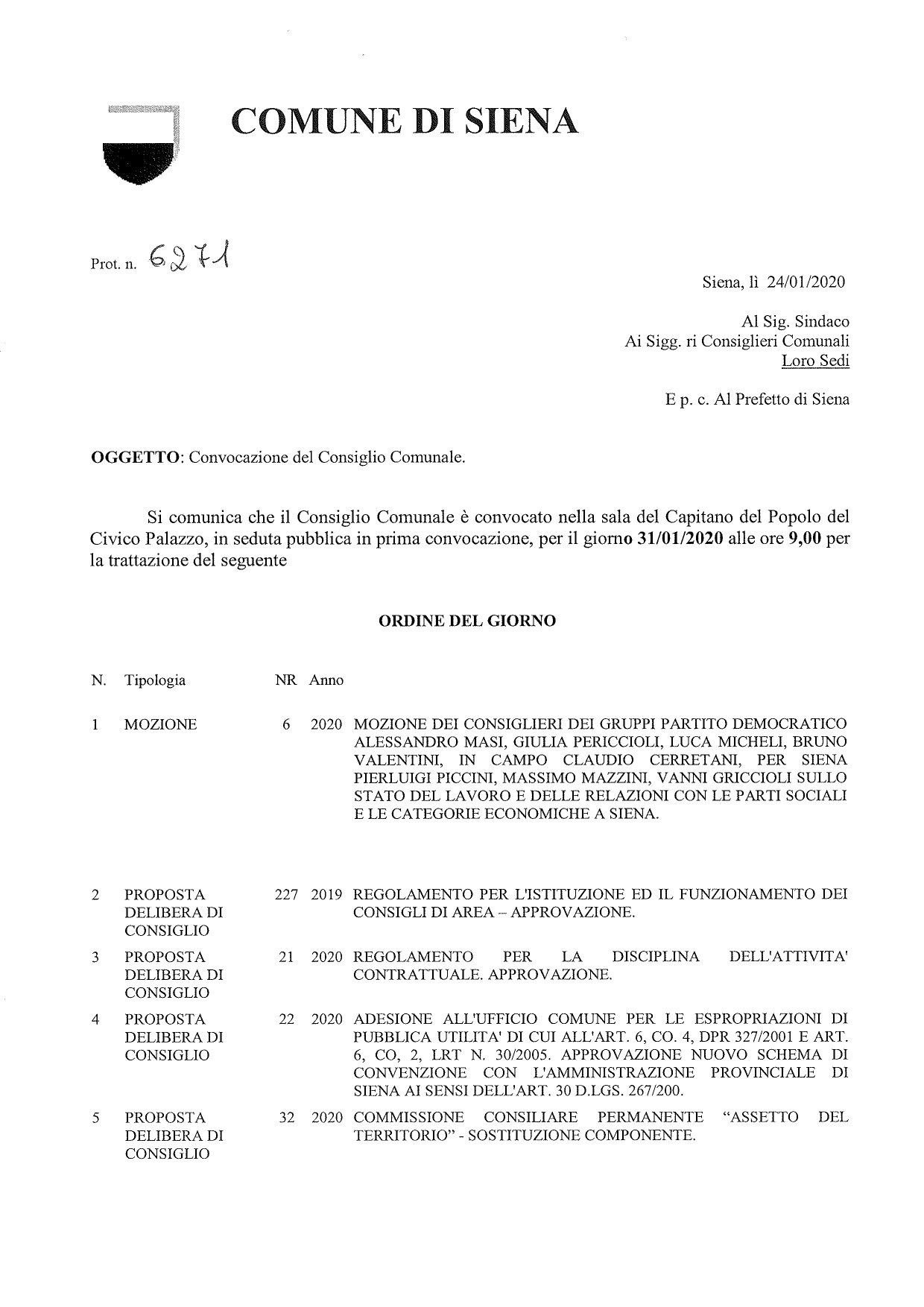 Venerdì prossimo, 31 gennaio, a partire dalle ore 9, si terrà la seduta del Consiglio comunale nella Sala del Capitano del Popolo di Palazzo Pubblico.