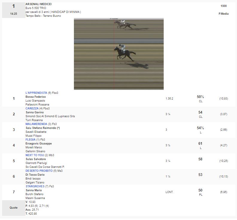 1^ Corsa Premio Arsenali Medicei vinta da L’Apprendista