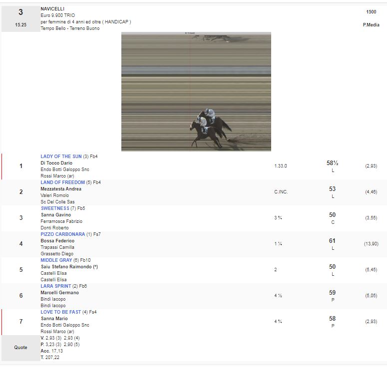 3^ Corsa Premio Navicelli vinta da Lady of the Sun