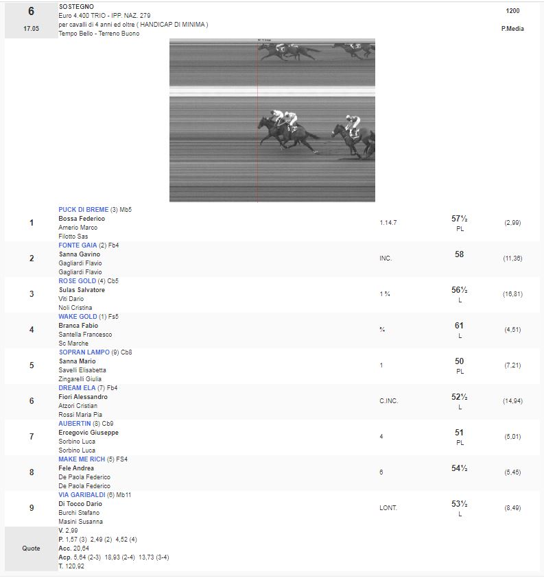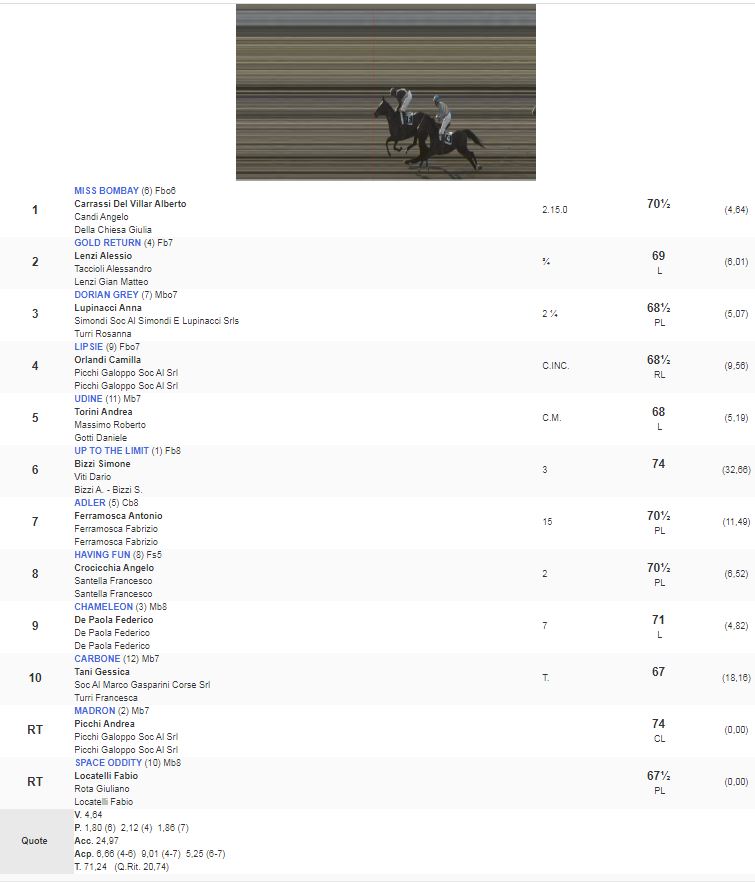 4^ Corsa Premio Umberto Simonetta vinta da Miss Bombay