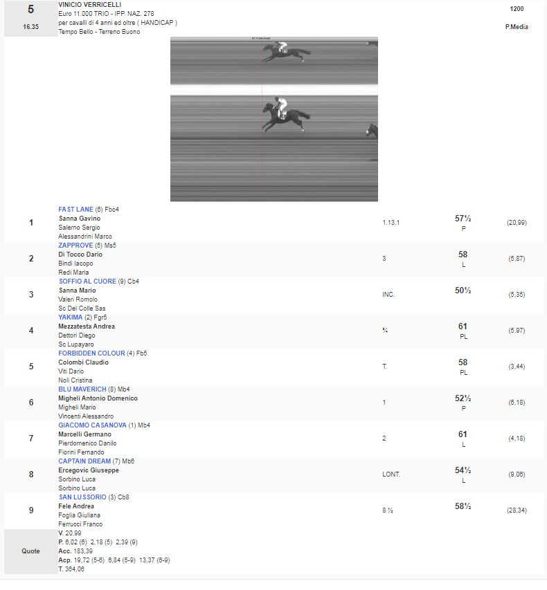 5^ Corsa Premio Vinicio Verricelli vinta da Fast Lane