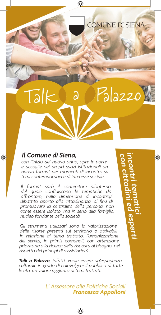 Il Comune di Siena con l’inizio del nuovo , apre le porte e accoglie nei propri spazi istituzionali un nuovo format per momenti di incontro su temi contemporanei e di interesse sociale.