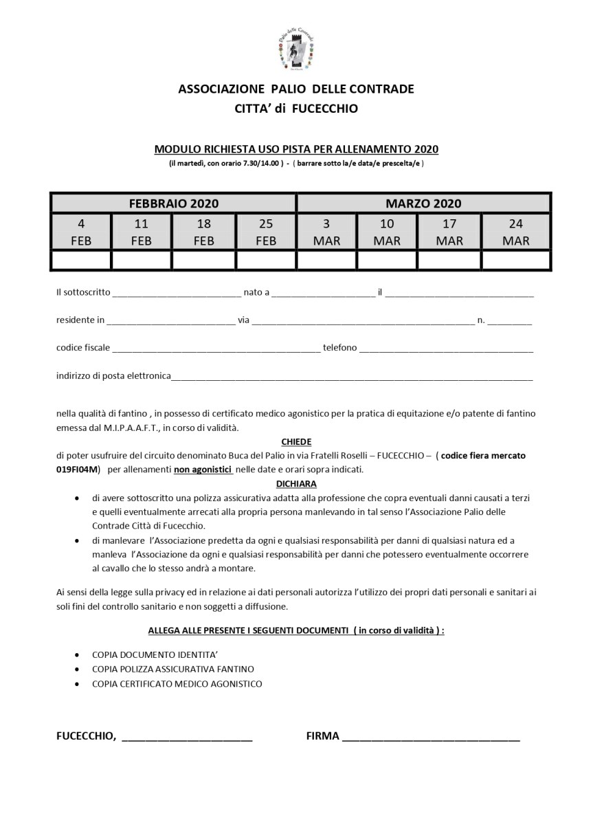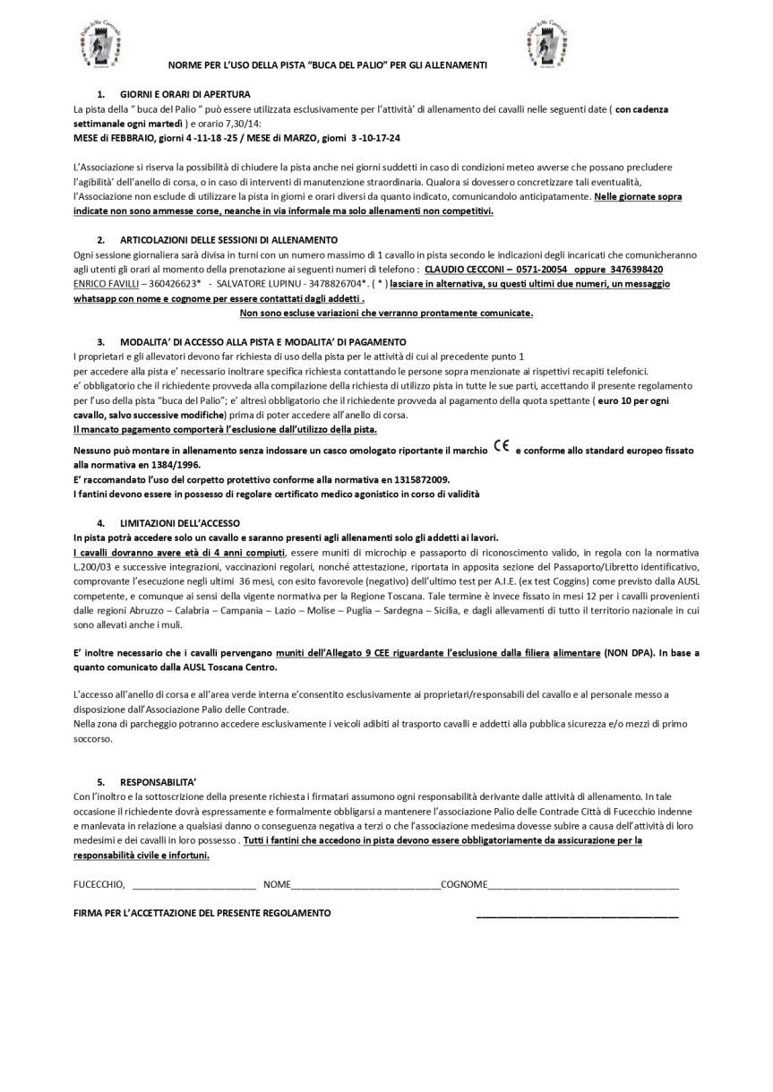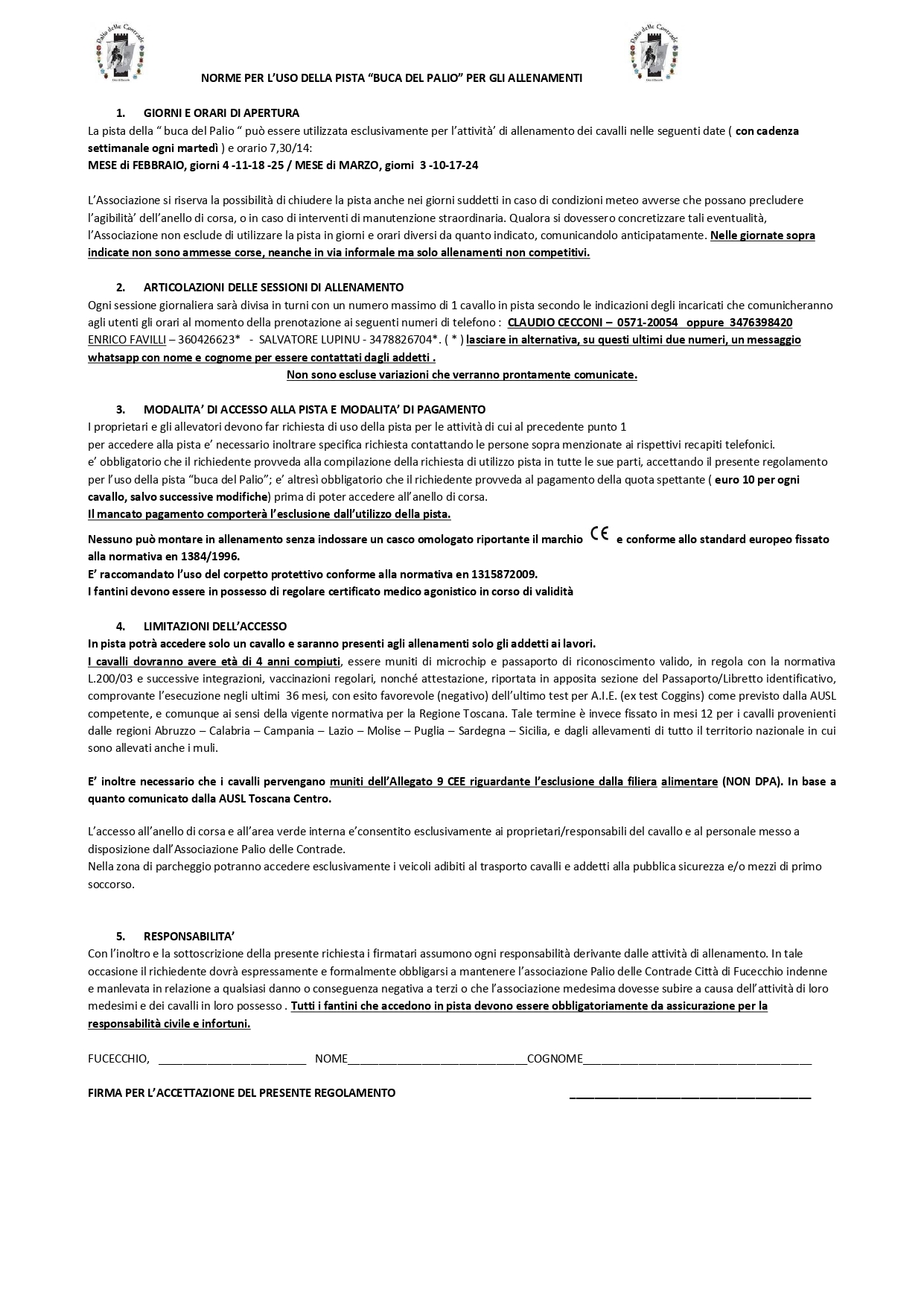 Qua sotto troverete i documenti per poter usufruire della pista della “Buca del Palio” per gli allenamenti