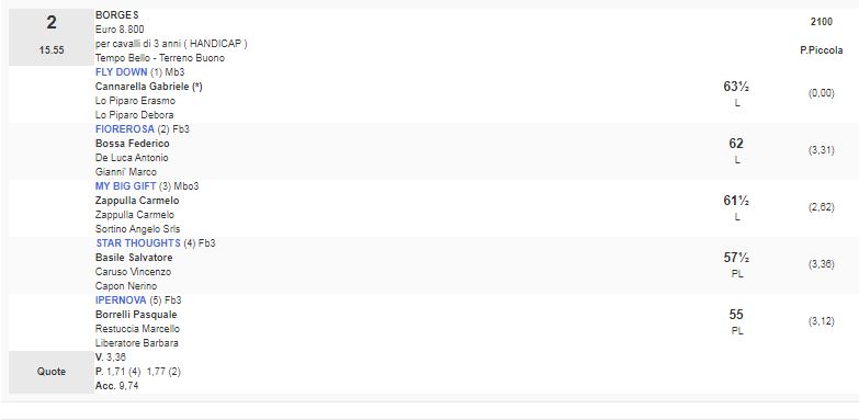 2^ Corsa Premio Borges vinta da Star Thoughts