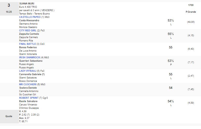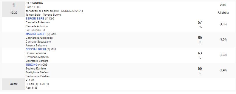 1^ Corsa Premio Cassandra vinta da Tenzing