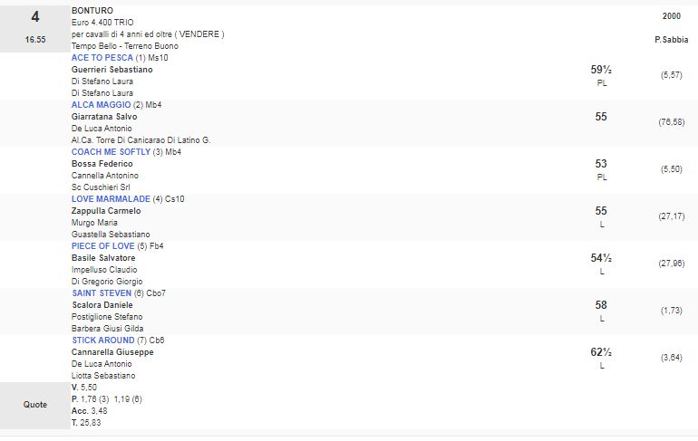 4^ Corsa Premio Bonturo vinta da Coach me Softly