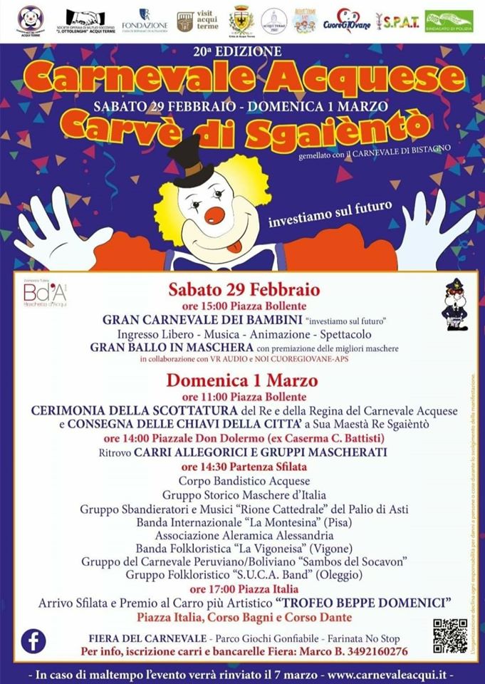 Domenica 1 Marzo i nostri ragazzi sfileranno al bellissimo Carnevale Acquese – Carvè di Sgaièntò.