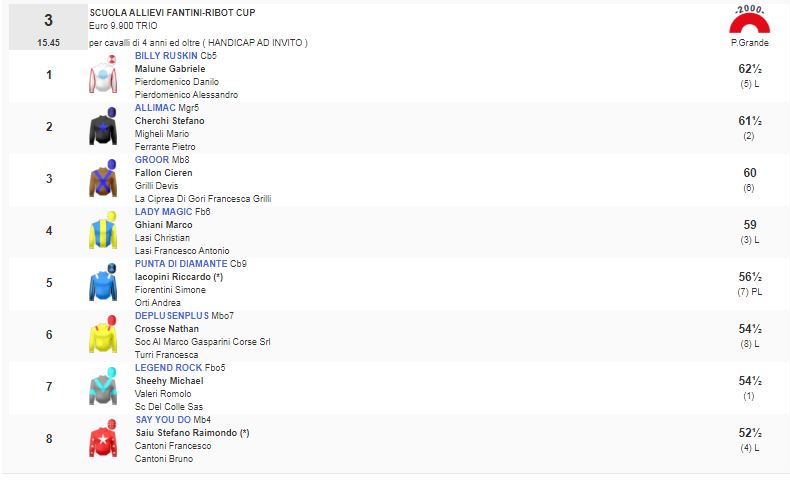 Ippica, Pisa: Domani 23/02 Partenti 2^, 3^ e 7^ Corsa, Corse Ribot Cup 2^ Cosa Premio Magistris – Ribot Cup 3^ Corsa Premio Scuola Allievi Fantini – Ribot Cup 7^ Corsa Premio Alex Piombo – Ribot Cup Condividi sul web: Fai clic per condividere su Facebook (Si apre in una nuova finestra) Facebook Fai clic per condividere su WhatsApp (Si apre in una nuova finestra) WhatsApp Fai clic per condividere su Telegram (Si apre in una nuova finestra) Telegram Fai clic per condividere su X (Si apre in una nuova finestra) X Fai clic qui per stampare (Si apre in una nuova finestra) Stampa Fai clic per inviare un link a un amico via e-mail (Si apre in una nuova finestra) E-mail Mi piace Caricamento... Correlati