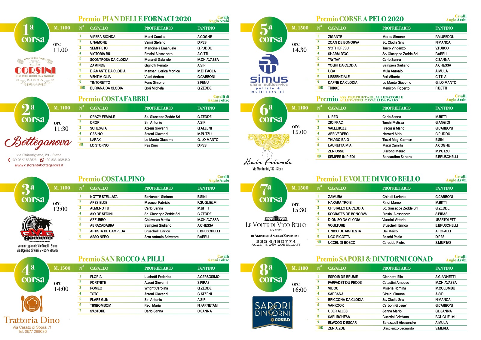 Mi sono appena giunte le Batterie delle Corse di domenica 01/03 a Pian delle Fornaci. Si tratta di 9 Batterie con inizio alle ore 11, tree batterie mattutine con la terza in programma alle ore 12.00. Poi pausa pranzo. Ripresa delle batterie alle 14 con l’ultima Batteria, la nona , in programma alle ore 16.30.