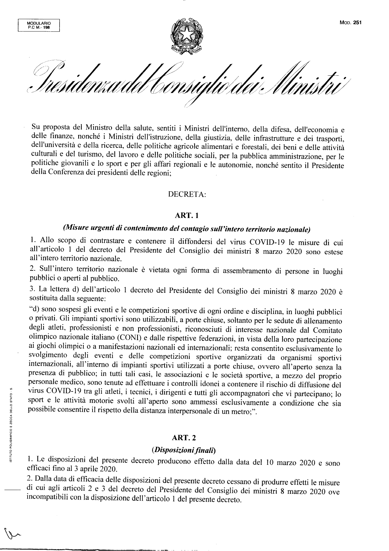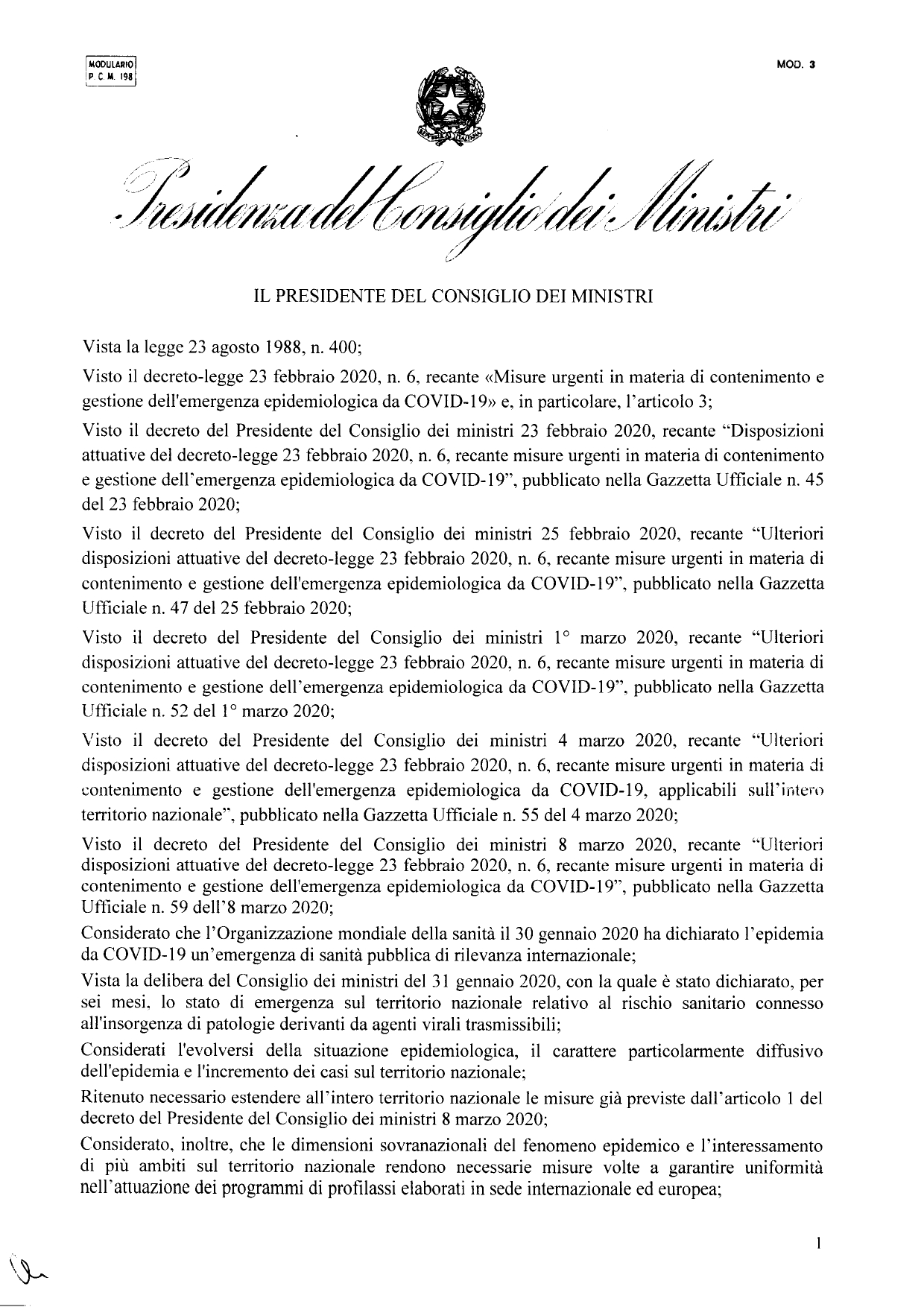 Italia: Ecco l’ennesimo Decreto del Presidente del Consiglio Conte Qua sotto il nuovo ennesimo Decreto firmato dal Presidente del Consiglio Conte Cosa fare fino al 03/04 Condividi sul web: Fai clic per condividere su Facebook (Si apre in una nuova finestra) Facebook Fai clic per condividere su WhatsApp (Si apre in una nuova finestra) WhatsApp Fai clic per condividere su Telegram (Si apre in una nuova finestra) Telegram Fai clic per condividere su X (Si apre in una nuova finestra) X Fai clic qui per stampare (Si apre in una nuova finestra) Stampa Fai clic per inviare un link a un amico via e-mail (Si apre in una nuova finestra) E-mail Mi piace Caricamento... Correlati