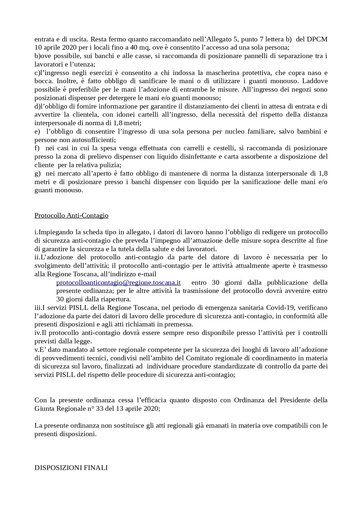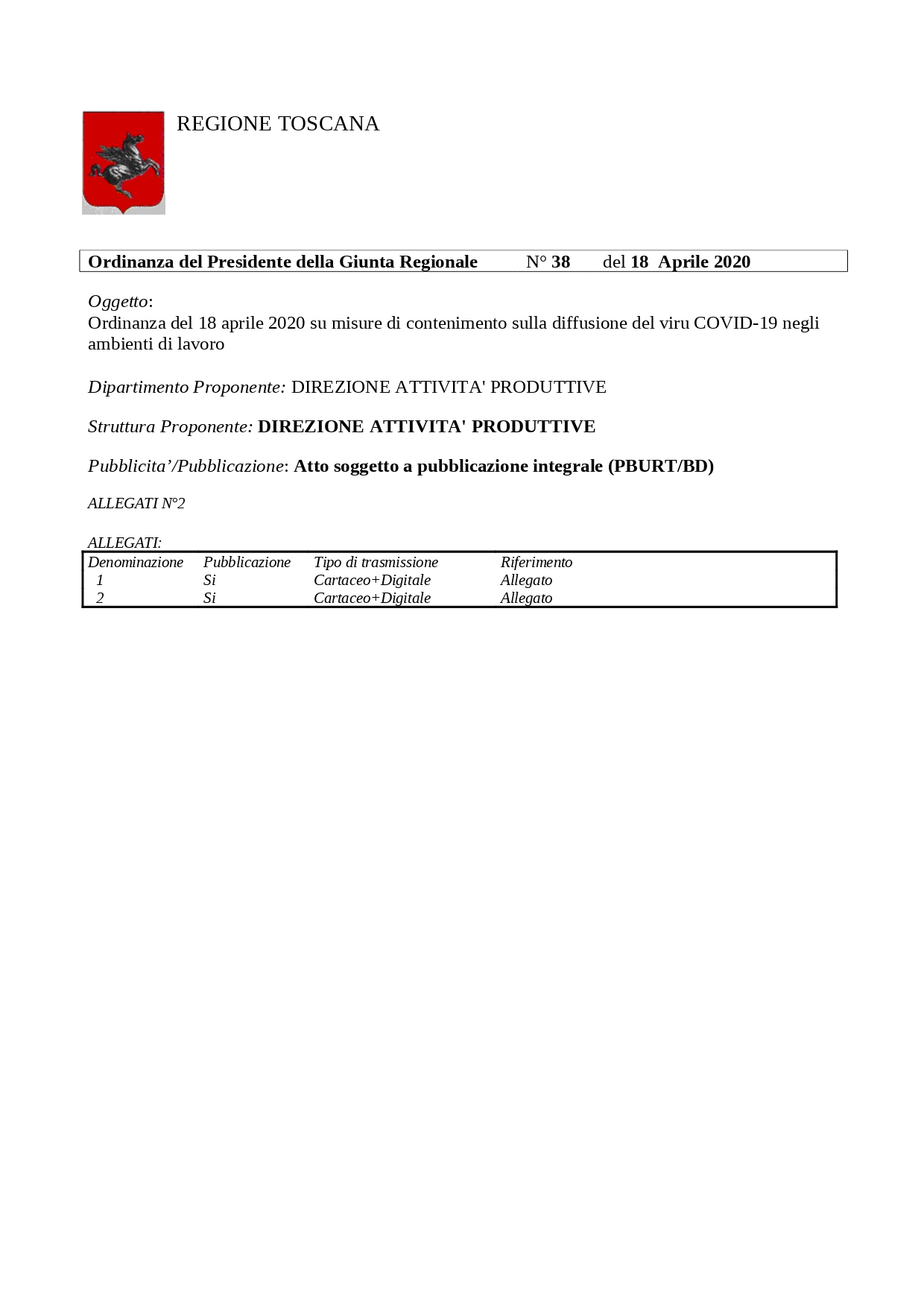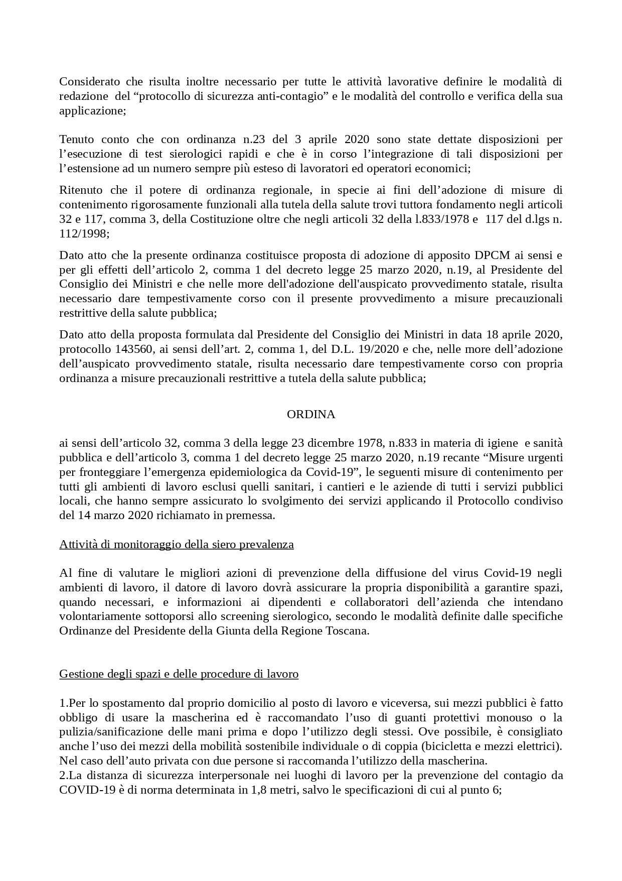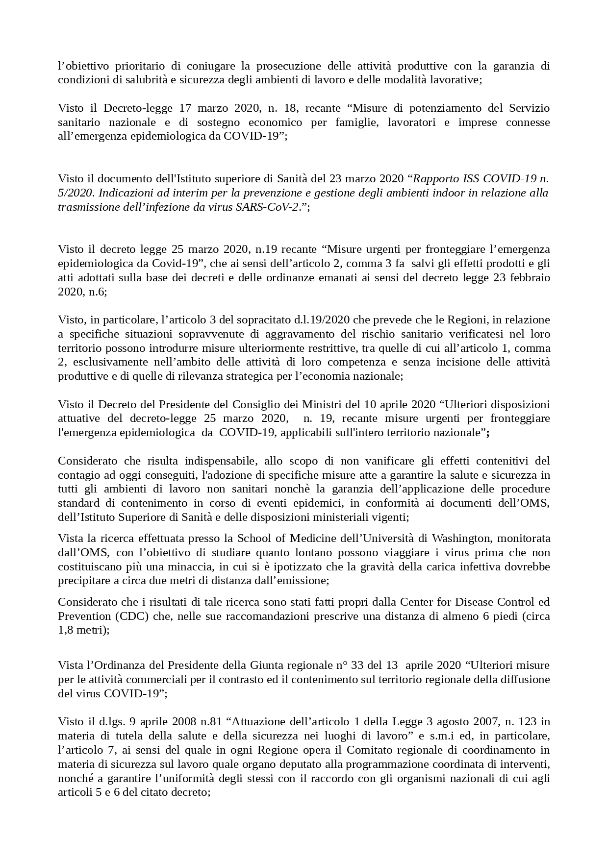 Qua sotto troverete il testo dell’ordinanza N° 38 del 18 Aprile 2020 ” Misure di contenimento sulla diffusione del virus COVID-19 negli ambienti di lavoro”