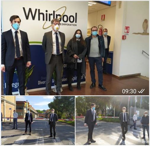 Il sindaco Luigi De Mossi in visita alla Whirlpool. La fabbrica ha riaperto lo stabilimento il 23 aprile. Le attività sono riprese gradualmente nei primi giorni, per verificare il buon funzionamento delle misure messe in atto a garanzia della salute e sicurezza dei lavoratori e da martedì le linee produttive sono riaperte contemporaneamente