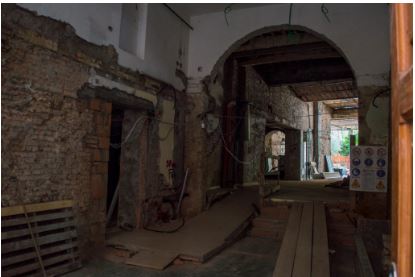 Oggi, 4 maggio, si riparte: non solo entriamo nella “fase 2” dell’emergenza CoViD-19, iniziando così un graduale ritorno alla normalità; possono finalmente riprendere i lavori di ristrutturazione della sede della nostra Società! Come certamente saprete, infatti, da circa due mesi i lavori erano stati sospesi (come la quasi totalità dei cantieri) per l’impossibilità di garantire le distanze di sicurezza fra gli operai, congelando la Trieste a metà del guado. Guardando le foto che ho scattato qualche giorno fa vi potete rendere conto che le demolizioni sono sostanzialmente ultimate (lo potranno testimoniare anche gli abitanti degli appartamenti di proprietà della Contrada, che già da prima della sospensione non sentivano più il martello demolitore) e si stanno realizzando gli impianti principali, avendo inoltre avviato la realizzazione dell’ampliamento del salone verso l’orto, di cui si sta realizzando la fondazione.