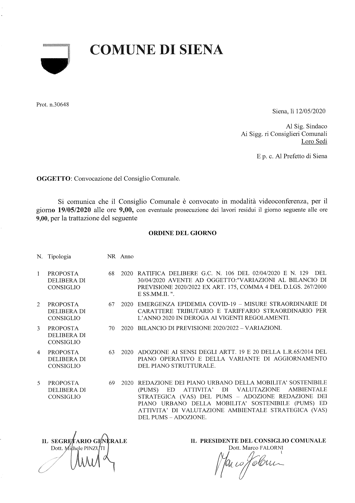 La prossima seduta del Consiglio comunale si terrà il 19 maggio alle ore 9, in modalità videoconferenza, con eventuale prosecuzione dei lavori il giorno seguente alle ore 9