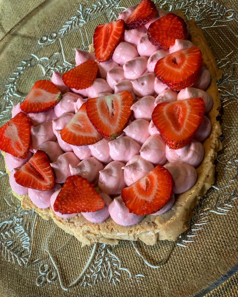 - Procedere poi tagliando le fragole a fettine per decorare e la nostra cheesecake light con yogurt e fragole sarà pronta per essere messa in frigo per 2/3 ore