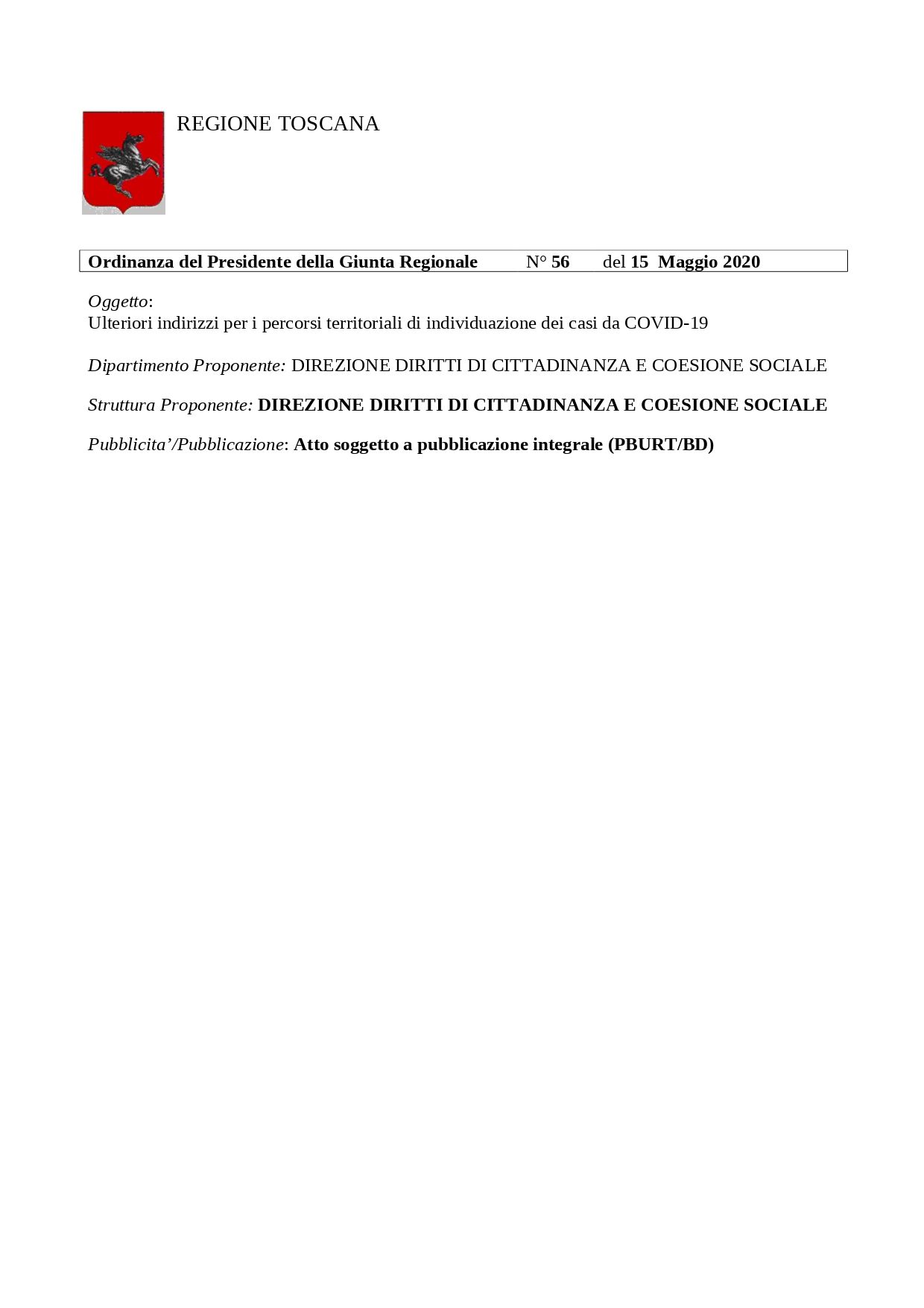 Qua l’ordinanza numero 56 del 15 Maggio 2020 già scaricata