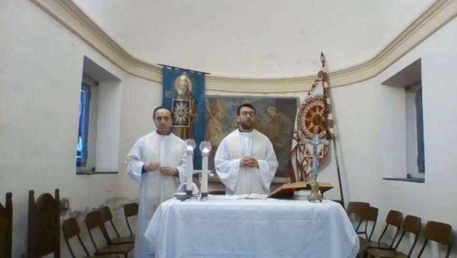 La Reggenza e il Consiglio di Contrada, hanno voluto riunire i contradaioli per «un intenso momento di emozione e partecipazione». E così. don Fabio, parroco e cappellano di Contrada, insieme a Don Luca Longoni, nella serata di mercoledì 20 maggio, ha celebrato nella piccola chiesetta di San Bernardino una messa in diretta streaming.