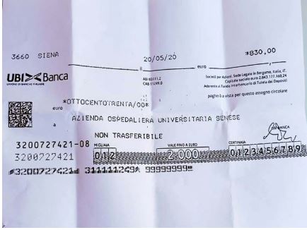 In questi giorni di tribolazioni e assenza di verità, i FIGLI DI SIENA hanno donato proprio questa mattina la donazione raccolta in favore del reparto di terapia intensiva delle Scotte.