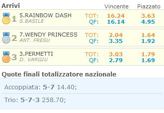 1^ Corsa Premio Marguerite Vernaut vinta da Rainbow Dash
