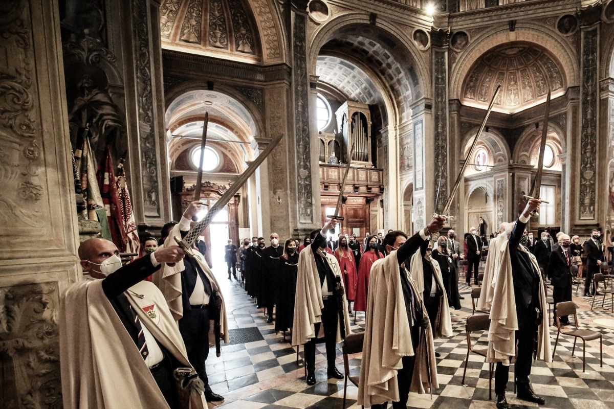Alla presenza delle autorità civili e militari, del Supremo Magistrato Cristiana Cirelli, del presidente della Famiglia Legnanese Gianfranco Bononi e del Gran Maestro del Collegio dei Capitani Giuseppe La Rocca, col suo vice Andrea Monaci e il Direttivo al completo, il responsabile della Commissione Costumi Alessio Francesco Palmieri Marinoni, la Gran Dama di Grazia Magistrale dell’Oratorio delle Castellane Nicoletta Tognoni. Con le bandiere di Famiglia e Collegio e il gonfalone del Comune di Legnano, le Reggenze di Contrada e i past Gran Maestri e Cavalieri del Carroccio.